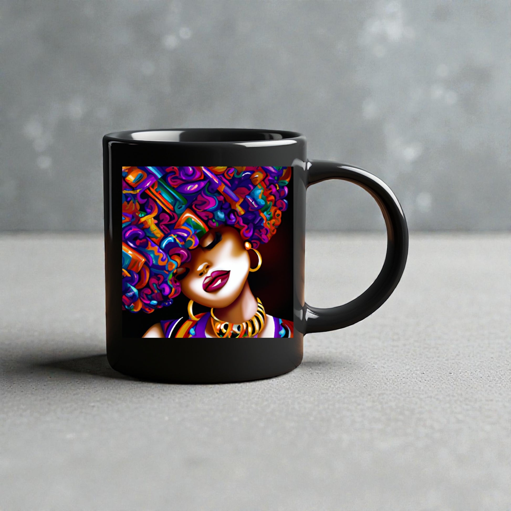 Celebrate bold artistry with the Majesty Rae Mug, featuring a striking portrait of a Black woman adorned with vibrant, multi-colored hair. This statement piece combines cultural pride with everyday functionality, making it perfect for coffee, tea, or your favorite beverage. The high-quality ceramic construction ensures durability, while the eye-catching design sparks conversation and inspires confidence. Ideal for gifting or personal use, this mug transforms your daily routine into a moment of empowerment and self-expression.