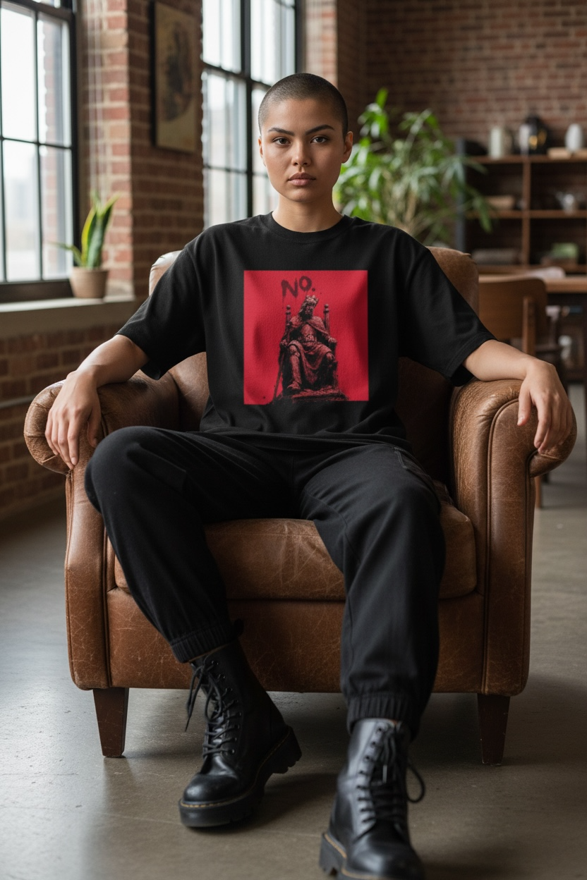 NO KINGS TSHIRT A bold statement piece that challenges convention. This premium tee features a striking graphic that speaks to individualism. Crafted from high-quality cotton, it delivers comfort without compromise. Perfect for those who value independence and aren't afraid to express their beliefs. An essential addition to any wardrobe that celebrates free thinking.